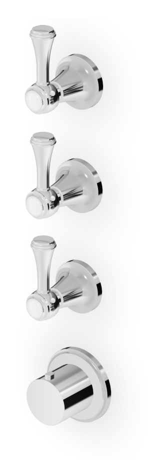 Термостатический механизм гарантирует стабильность заданной температуры воды, создавая безопасные и комфортные условия эксплуатации. Три независимых запорных вентиля позволяют индивидуально регулировать потоки для различных сценариев использования. А материалы нового поколения обеспечивают долговечность работы в условиях постоянной влажности при сохранении аутентичности дизайна.