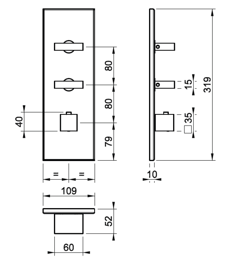 Внешняя часть предназначена для управления душем или ванной с высокой производительностью. Два независимых выхода позволяют подключить различные источники воды, обеспечивая удобное переключение. Механизм поддерживает стабильную температуру, предотвращая перепады при одновременном использовании.
