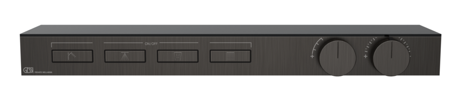 Термостат Gessi HI-FI — это инновационное решение для ванных комнат, которое сочетает в себе стильный дизайн и высокую функциональность. Ширина 640 мм делает его центральным элементом любого душевого пространства, предлагая достаточно места для управления несколькими функциями одновременно. Цвет Black Metal Brushed PVD придаёт устройству современный вид и современную текстуру, идеально вписывающуюся в интерьеры с акцентом на высокие технологии.