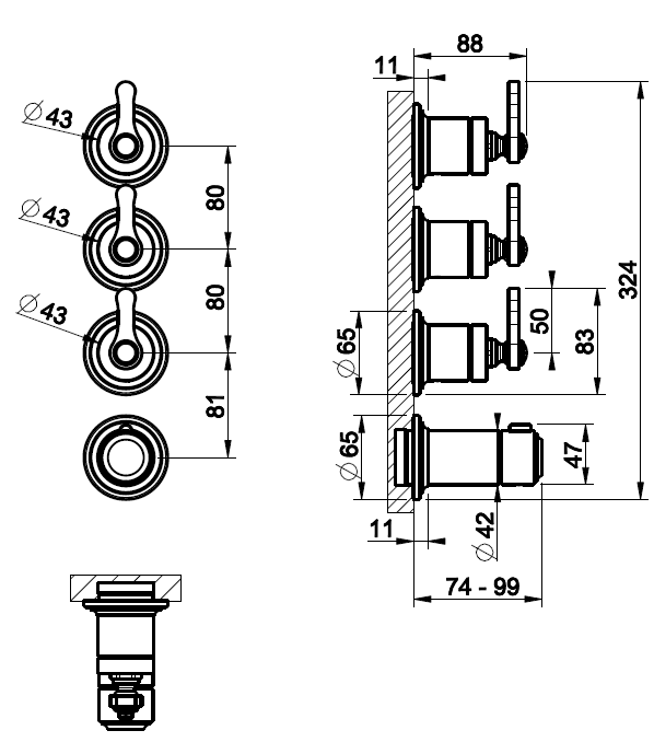 Установка Gessi Venti20 возможна как в вертикальном, так и в горизонтальном положении, что делает его универсальным решением для различных дизайнерских подходов. Такой смеситель подходит как для компактных, так и для более просторных ванных комнат, позволяя отлично организовать пространство. Gessi Venti20 обеспечивает надежное и стабильное управление температурой воды, что делает каждую водную процедуру более приятной и безопасной.