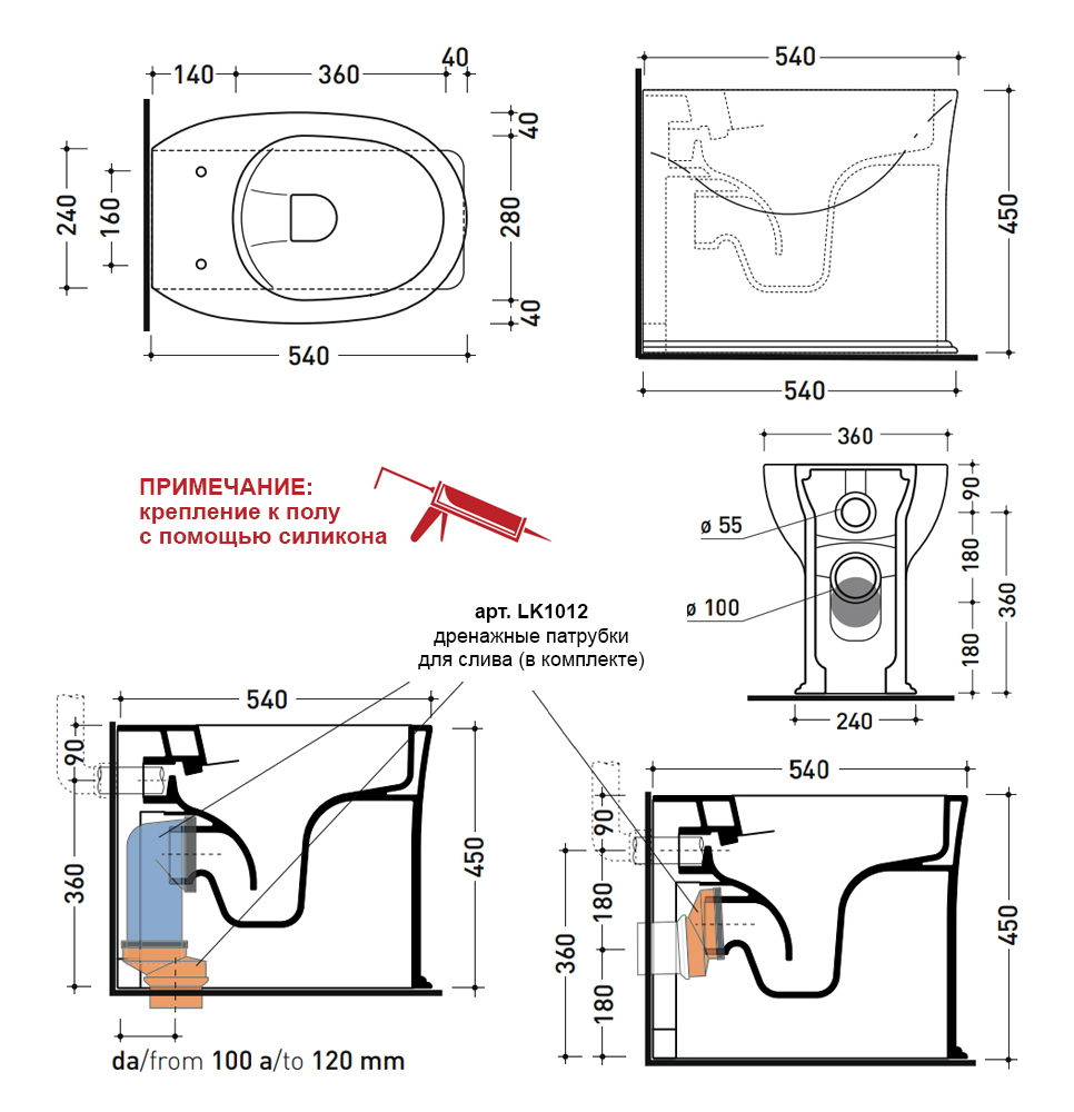В конструкции предусмотрена система GoClean, которая исключает наличие ободка. Благодаря этому вода равномерно распределяется по поверхности чаши, облегчая уход и сохраняя гигиену. В комплект входят дренажные патрубки, упрощающие процесс фиксации и обеспечивающие надёжное подключение.