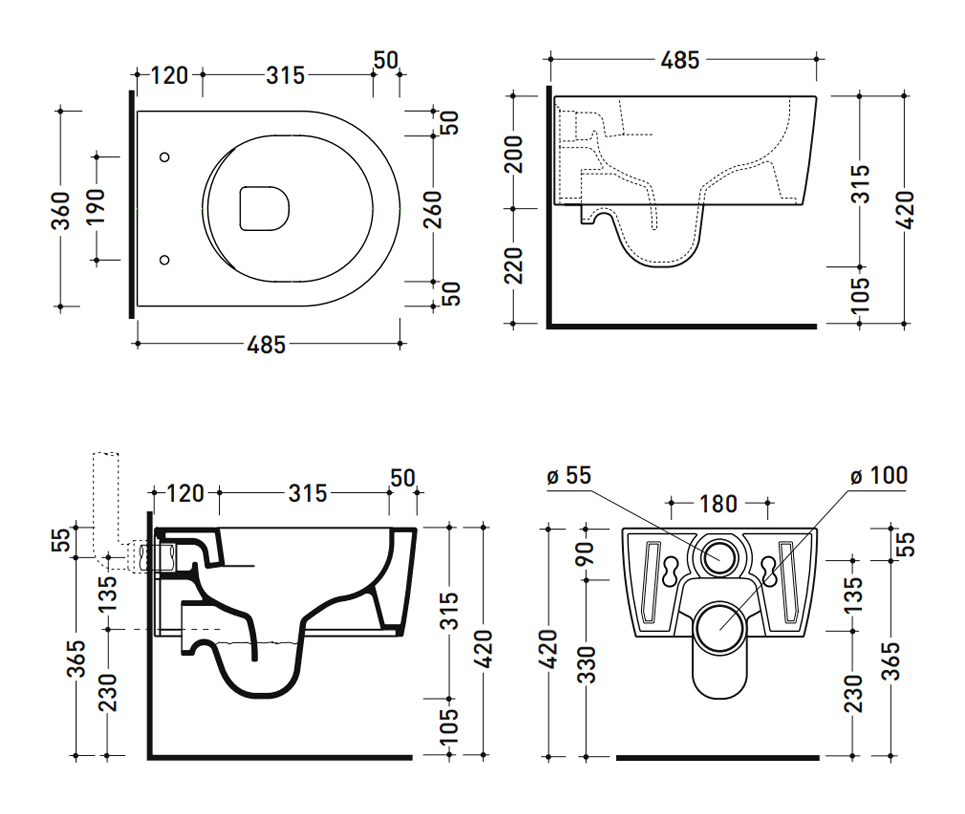Унитаз Flaminia Mini Link подвесной отличается миниатюрной формой, что делает его удобным решением для небольших санузлов и помещений, где важно сохранить максимум пространства. Размеры 485x360 мм при высоте 330 мм обеспечивают комфорт в использовании, оставаясь при этом максимально компактными.