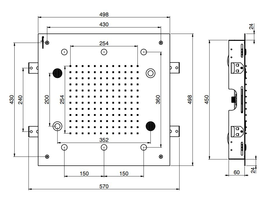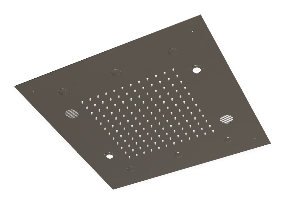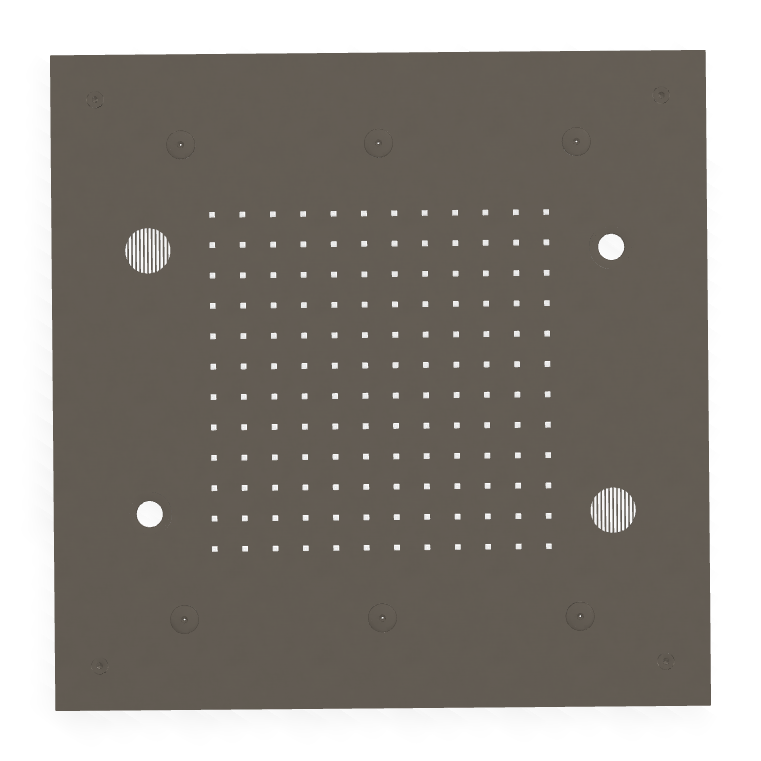 Верхний душ Carlo Frattini Harmonia 500x500 мм разработан для просторных ванных комнат, где особое внимание уделяют атмосфере. Потолочная конструкция создает ощущение равномерного дождевого потока, а обработка форсунок защищает от известкового налёта, помогая сохранить стабильное распределение воды. Отделка брашированный черный хром подчеркивает геометрию поверхности и подходит для современных интерьеров, в том числе с тёмными или контрастными покрытиями.