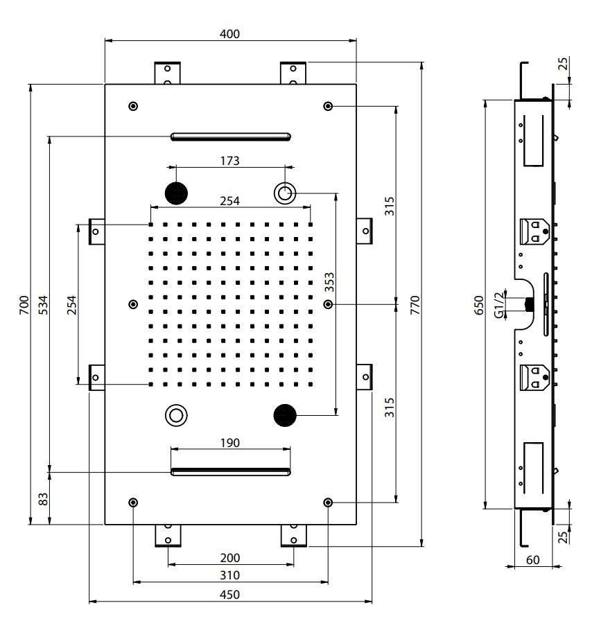 В этой версии предусмотрена LED-подсветка для хромотерапии, что добавляет душевым процедурам более глубокий сенсорный эффект. Цветовое освещение воздействует на восприятие пространства и настроение: мягкие оттенки успокаивают, холодные тона бодрят, яркие стимулируют. Управление реализовано через пульт, что удобно при изменении режима, интенсивности и сценария потока. Дополнительно предусмотрено аудио-подключение через Bluetooth.