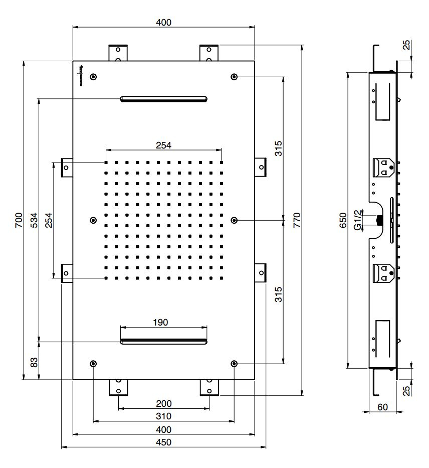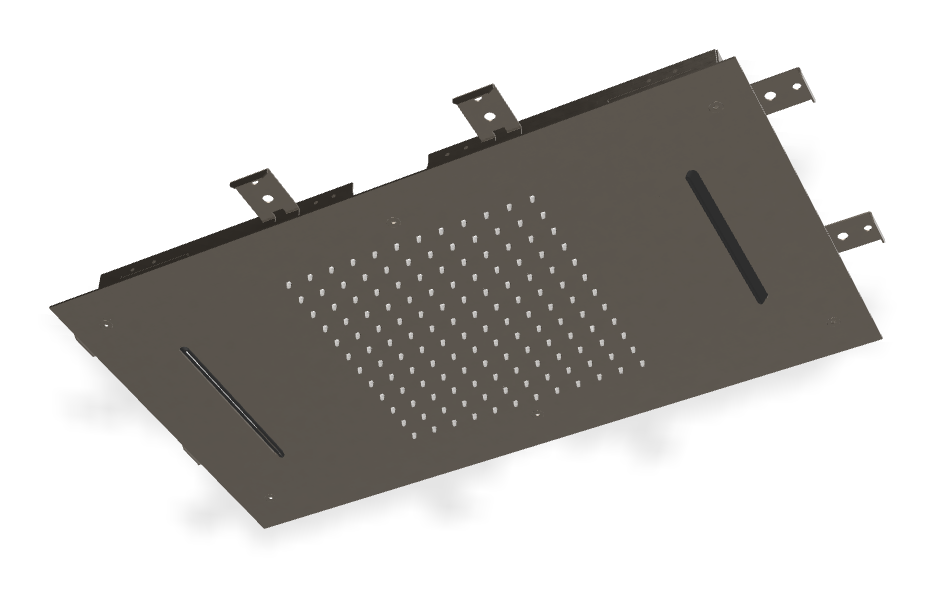 Верхний душ Carlo Frattini Harmonia в брашированном чёрном хроме — потолочная модель 700x400 мм с широким прямоугольным разбросом воды и мягкой, устойчивой ливневой подачей. Панель создаёт плотное, равномерное покрытие всего тела, формируя эффект расслабляющего дождя, под которым отдых воспринимается глубже, а прогрев — мягче.