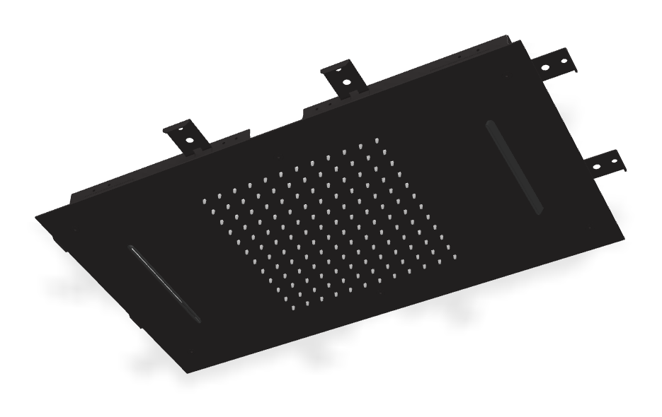 Верхний душ Carlo Frattini Harmonia в чёрной матовой отделке — потолочная модель размером 700x400 мм, рассчитанная на полноценный поток воды с широким охватом. Ливневая струя образует плотный, ровный водяной купол, который расслабляет и помогает быстро переключиться в состояние отдыха.