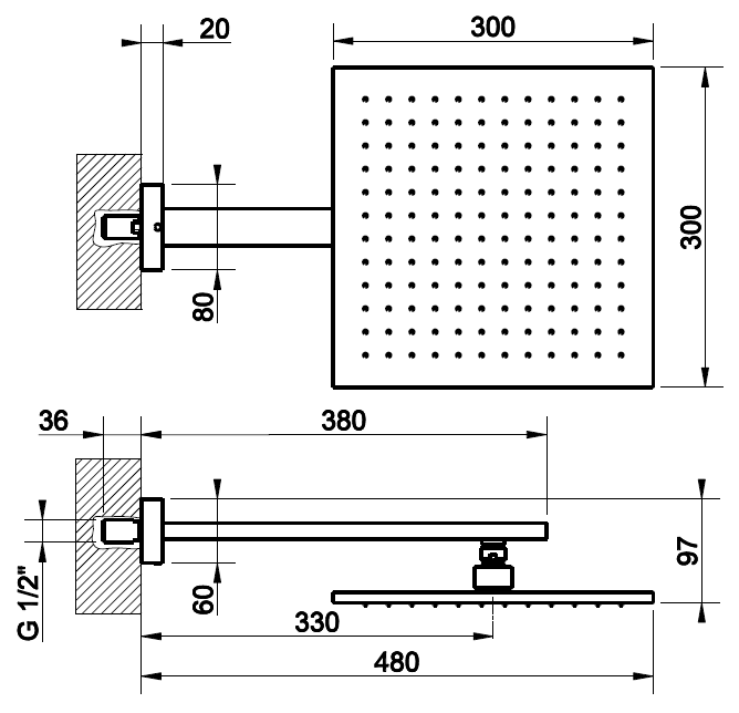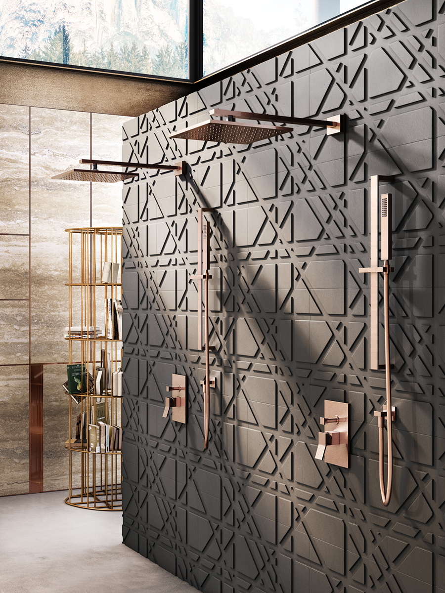 Модель Gessi Rettangolo обеспечивает равномерное распределение воды по всей площади душевой панели. Подключение производится через вертикальный настенный держатель, совместимый с другими элементами из серии Rettangolo. Конструкция душа адаптирована к стандартным системам подачи воды.