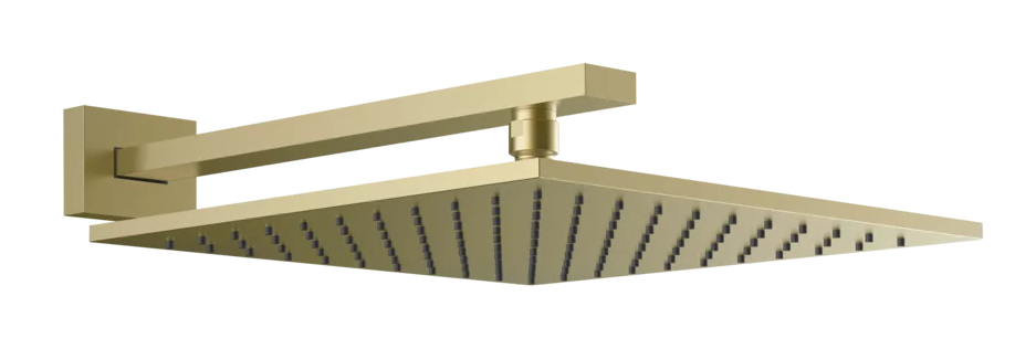 Настенный верхний душ Gessi Rettangolo с размерами 300x300 мм выполнен в эффектной отделке Brushed Brass PVD. Плоский корпус с четкой квадратной геометрией дополняется ровными краями и равномерно распределенными форсунками. Матовая латунная поверхность с направленной шлифовкой подчеркивает современную эстетику изделия.